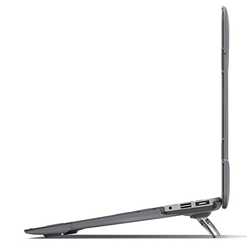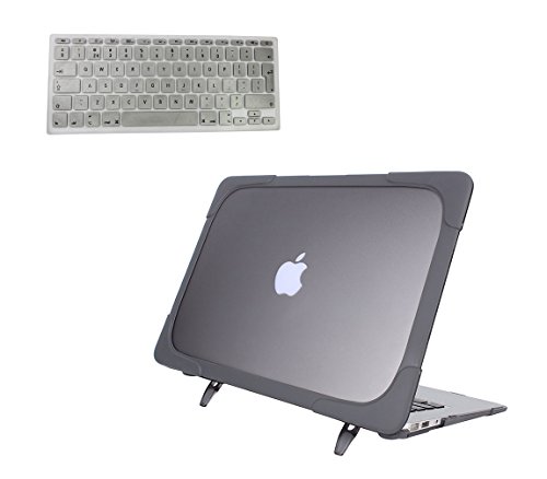 Macbook Air 13 Pollici Custodia cover con Piegare Supporto, MinKe[heavy duty series] Morbida Plastica Opaca Laptop Caso Della Copertura con trasparente copertura della tastiera (Modello: A1369 / A1466) (Grigio Nero)