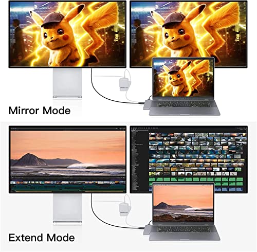 【Triplo display e 4K HDMI】 Questo hub da USB C a 2 hdmi supporta il triplo display (2 display di uscite HDMI, lo schermo del laptop). Consente di eseguire il mirroring o espandere il display del tuo nuovo Macbook Pro/Macbook Air contemporaneamente a 2 TV, monitor, o proiettori con risoluzione fino a 4K UHD (3840 x 2160 @ 30Hz). Porta una festa visiva teatrale e aumenta la tua efficienza lavorativa 3 volte