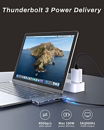Hub USB C per MacBook Pro/Air, 7 in 2 Adattatore USB-C con 4K HDMI, Thunderbolt 3 (100W PD), USB-C&2 USB 3.0, Lettore di Schede SD/TF, Porta USB C