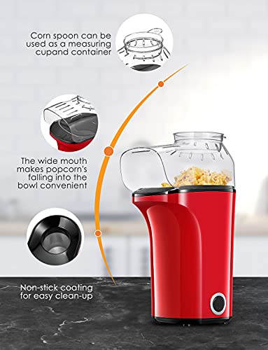 Macchina per Pop Corn, 1400W Retro Macchina Popcorn Compatta ad aria calda senza grassi, Operazione con Un Pulsante, Rosso [Classe di efficienza energetica A+++]