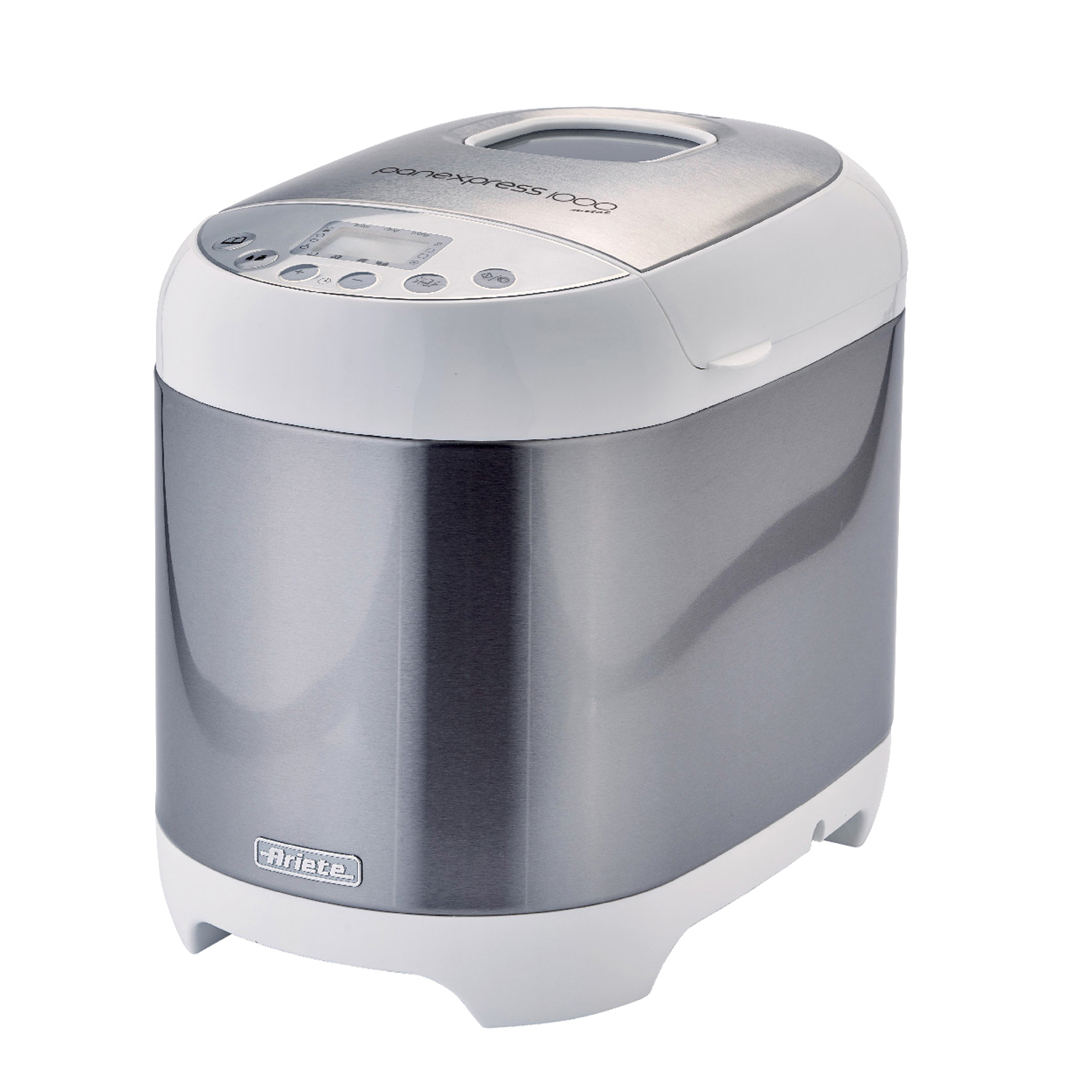 La macchina del pane Panexpress 1000 Metal di Ariete è pensata per preparare pane, pizza, dolci, marmellate e yogurt. Dotata di 19 programmi preimpostati, rende possibile ogni preparazione in modo semplice e veloce: potrai impastare fino a 1kg di ingredienti, far lievitare l'impasto a temperatura controllata e infine procedere con la cottura. Dotata di un comodo timer, ti permette di programmare la partenza fino a 15 ore più tardi. Potrai scegliere tra 3 diversi gradi di cottura a disposizione che regolano la temperatura per una cottura omogenea e mantengono il pane al caldo per 60 minuti una volta ultimata la cottura. Con display LCD, ha un corpo in acciaio inox. Il cestello è antiaderente e rimovibile per una migliore pulizia. Il set comprende: misurino, cucchiaio dosatore, gancio per rimuovere impasti. Potenza: 550 W. Pulire con un panno umido, non usare utensili di metallo per rimuovere l'impasto per non rovinare il rivestimento interno antiaderente.