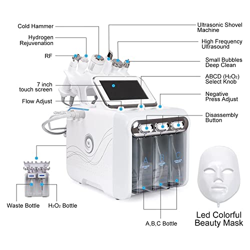 Macchina per la Bellezza del Viso con Ossigeno all'idrogeno 7 in 1 Macchina per la Pulizia del Viso con Idropulitrice a Getto d'acqua e Ossigeno per Uso Facciale, Spa, Casa e Saloni di Bellezza