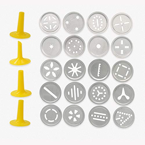 【Un buon assistente di cottura】La pressa contiene una siringa decorativa, 20 dischi sagomati e 4 ugelli in plastica. Questo ti darà la possibilità di creare biscotti e torte uniche in grado di soddisfare le tue diverse esigenze.