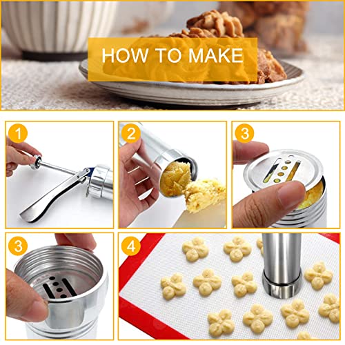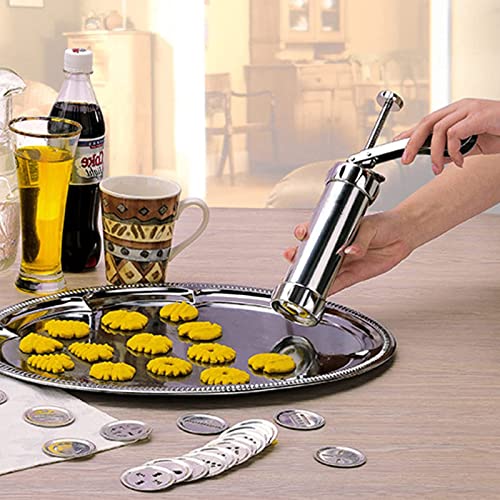 Materiale: il produttore di biscotti è realizzato in acciaio inossidabile di alta qualità, non tossico, insapore, resistente alle alte temperature, forte e durevole e può facilmente gestire l'impasto per biscotti denso.