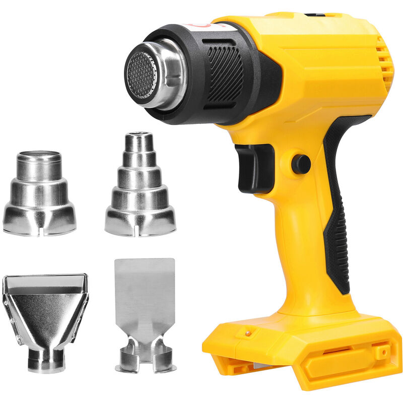 Macchina ad aria calda portatile senza fili Apparecchio di riscaldamento ricaricabile al litio Temperature Utensile elettrico regolabile con 4 ugelli Compatibile con batteria al litio Makita 18V Questa macchina ad aria calda con batteria al litio adotta due bobine di riscaldamento, e riscaldamento stabile. Tre marce di design regolabile in temperatura, controlli di temperatura 300 ℃ -450 ℃ -600 ℃, è possibile passare facilmente per molteplici esigenze di lavoro. Tuyere in acciaio inossidabile con involucro protettivo resistente alle alte temperature per un uso sicuro. Indicatore luminoso a LED integrato, che può fornire illuminazione in condizioni di lavoro buie e complesse. Ampie applicazioni, perfette per pellicole per auto, ammorbidimento di fili, restringimento di pellicole di plastica, installazione di componenti elettronici, dissoluzione di tubi, rimozione di vecchie vernici, funzione di sbrinamento. Specifiche: Nome: macchina ad aria calda Materiale: ABS Colore: giallo, rosso
