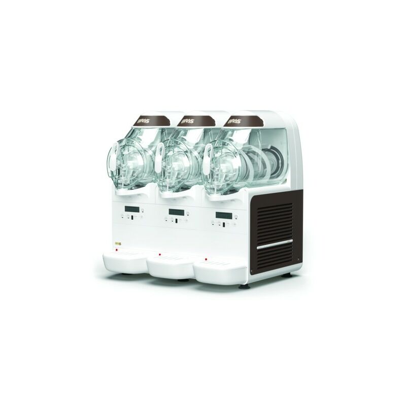 Codice RS3510 - Macchina gelato a 3 vasche modello BR-B-CREAM 3HD, dimensioni cm. 60x48x62 (lxpxh), 230 volt, capacità lt.6+6+6. Facile svuotamento, vasca inclinata. Sistema di totale raccolta acqua di condensazione. Tasto di sblocco coperchio contenitore. Sistema di sbrinamento contenitore. Sistema di bloccaggio vasca. Display di visualizzazione temperatura prodotto. Livello rumore inferiore a 70 dB. Macchina estremamente compatta e facile da usare, prepara ottimi gelati e qualsiasi tipo di crema fredda. In uno spazio estremamente ristretto, otterrete un ottimo gelato. L'erogatore vi permetterà inoltre di esercitare la vostra fantasia con la creazione di coppe, aperitivi, dessert e altri appetibili e accattivanti elementi che soddisferanno sicuramente le richieste dei vostri clienti. Optional disponibili: versione con luce e chiave (quotazione a richiesta). ***CLICCA E GUARDA IL VIDEO***