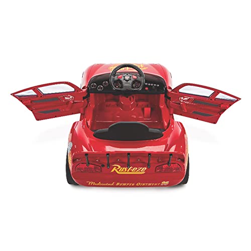 Macchina elettrica a batteria 6 volt Cars Saetta McQueen della Disney colore rossa fiammante. La macchinetta elettrica è dotata di marcia avanti e indietro, di sportelli apribili per facilitare la salita del bambino. Proprio come nel film della Disney Cars, il tuo bambino si sentirà pilota della corsa Piston Cup. Simpatico il suo sorriso di Saetta, diventerà l'amico inseparabile del bambino.