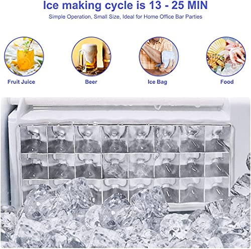 【24 cubetti di ghiaccio in 15 minuti e 40 libbre ogni 24 ore】 La nostra fabbricatore ghiaccio funziona velocemente, producendo cubetti di ghiaccio croccanti, masticabili e quadrati ogni 12-18 minuti e fino a 40 libbre di ghiaccio in 24 ore. Il cestello del ghiaccio rimovibile conserva fino a 2,4 libbre di ghiaccio alla volta, assicurandoti di avere il ghiaccio pronto ogni volta che ne hai bisogno.