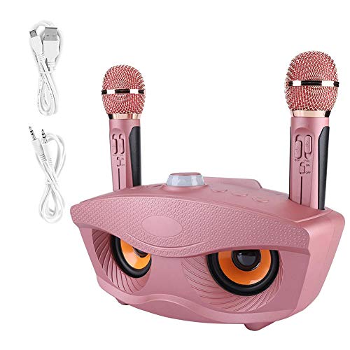 Set Macchina per Karaoke, Altoparlante Bluetooth Wireless Oro Rosa Home 2 microfoni Radio FM Karaoke Multifunzionale, Scheda di Memoria di Supporto, Disco U