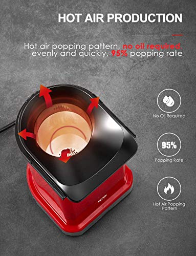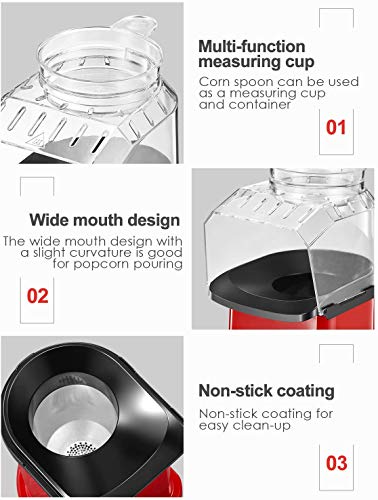 Macchina Popcorn, 1400W Macchina per Popcorn Senza Olio e Grassi, Pentola Antiaderente, Bocca Larga, Coperchio Rimovibile & Misurino, Senza BPA, Rosso