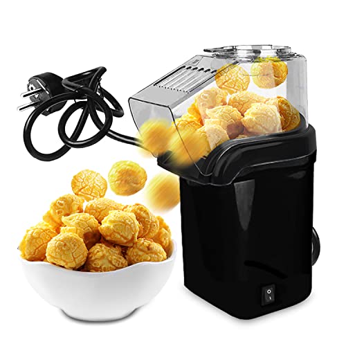 Macchina per popcorn ad aria calda, Popcorn in 3 Minuti, Retro Macchina Pop Corn Compatta, Popcorn senza grassi e senza olio, Snack sano, Facile da Pulire, Design Compatto (Nero)