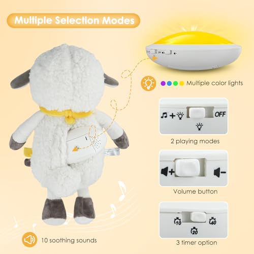 Aiuto a dormire la nascita: questo peluche pecora ha un dispositivo sonoro con rumori bianchi e sensore di rumore per una notte di sonno.