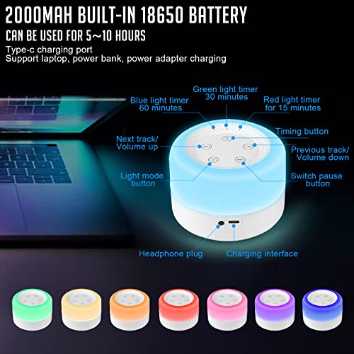Macchina del Rumore Bianco,White Noise Machine con Luce Notturna, con 12 suoni rilassanti,funzione timer e memoria, luce notturna per bambini e adulti, Adatto per i viaggi