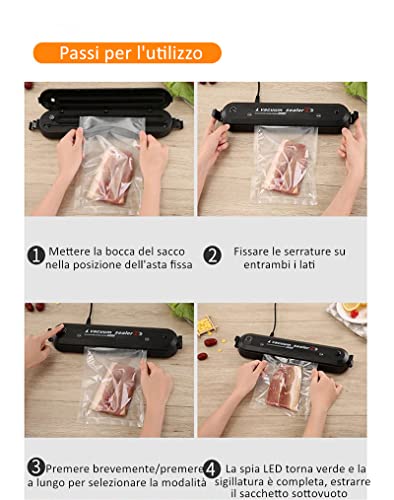 Macchina Sigillatore Sottovuoto per Alimenti, 2 in 1, Automatica Portatile Professionale con 10 Sacchetti (Nero) (A1)