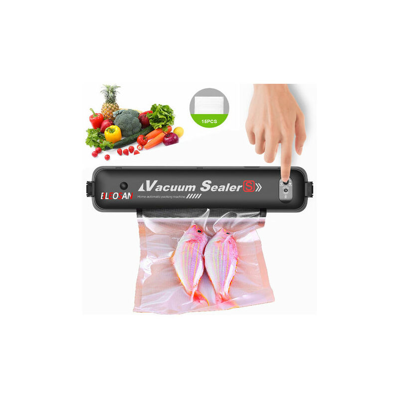 La macchina sottovuoto evacua l'aria nel contenitore e lo sigilla per mantenere lo stato di decompressione nel sacco. La riduzione dell'aria equivale a un basso effetto ossigeno, quindi i microrganismi non hanno condizioni di vita per raggiungere lo scopo della conservazione degli alimenti. Arte incredibile, senza linee extra, ma ricche di funzioni per creare una cucina elegante per te. • Dimensioni del prodotto: 37,50 * 8,00 * 9,00 cm •Peso del prodotto: 640 g •Potenza di aspirazione: 60kPA •I prodotti includono: 1 sigillatrice sottovuoto, 15 sacchetti sottovuoto, 1 manuale multilingue. Il guscio è realizzato in plastica tecnica ABS, sigillatrice durevole, facile da trasportare design del sistema di tenuta sottovuoto completamente automatico, dissipazione del calore multistrato, protezione dal surriscaldamento, sicuro e comodo da usare. Può funzionare con una tensione di 100-245 V e ha un'elevata potenza di 60 KPA per sigillare il cibo in modo automatico e continuo. Due modalità di
