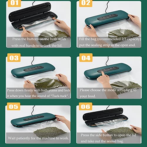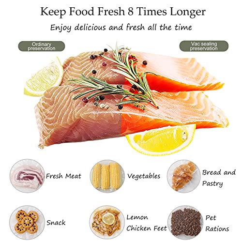 【Sigillatura alimentare automatica ad alte prestazioni】--Questa macchina per sigillare sottovuoto ha due modalità, solo guarnizione e sigillatura sottovuoto. Adatto non solo per cose secche, ma anche per cose con umidità. Può mantenere verdure e carne fresche 7 volte più a lungo rispetto allo stato normale e proteggere i nutrienti negli alimenti dai batteri.