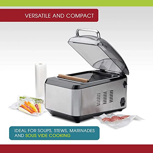 Le sigillatrici sottovuoto possono mantenere il cibo fresco da 3 a 5 volte più a lungo rispetto ai tradizionali sistemi di conservazione degli alimenti come sacchetti e contenitori con cerniera. Funziona al meglio con i prodotti Vesta sous vide, le buste sottovuoto e i rotoli.