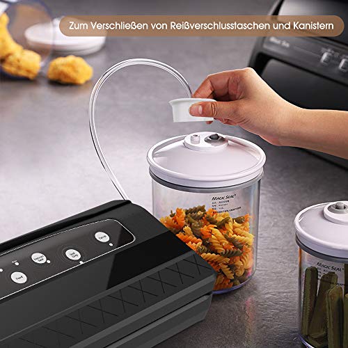 MANTIENE IL CIBO FRESCO: La macchina per sottovuoto Koios rimuove l'aria dal sacchetto degli alimenti impedendo la riproduzione di microrganismi e prevenendo l'ossidazione. Di conseguenza, gli alimenti mantengono il colore originale, l'aroma, il gusto, la forma e le qualità nutrizionali 7 volte più a lungo rispetto ai metodi usuali di conservazione.La porta e il flessibile si possono usare per sigillare sottovuoto i barattol