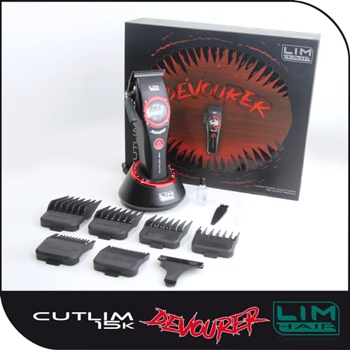Macchina per il taglio dei capelli LIM HAIR CUTLIM 15k DEVOURER per professionisti qualificati. Capelli, barba e corpo. Motore VECTOR fino a 15.000 giri/min, batteria al litio, 5 altezze taglio, 6