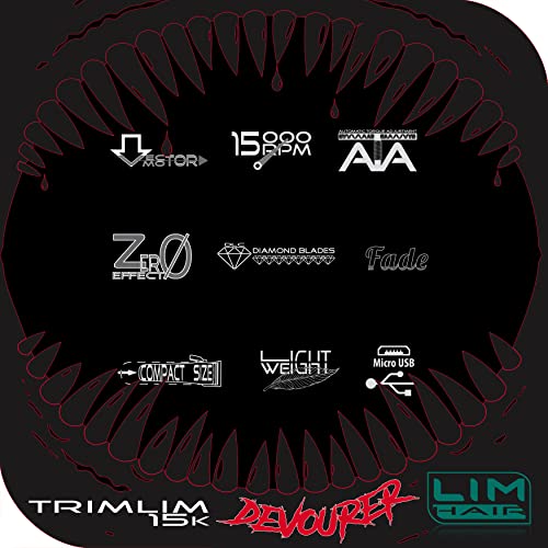 Macchina per il taglio dei capelli LIM HAIR TRIMLIM 15k DEVOURER per professionisti qualificati. Finiture, contorni e disegni. Motore VECTOR fino a 15.000 giri/min, batteria al litio, effetto zero