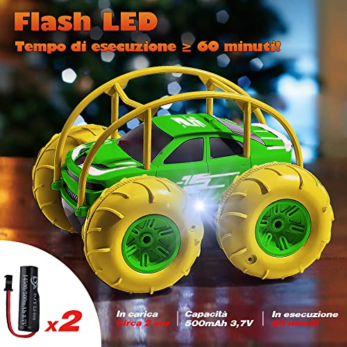 Macchina Telecomandata per Bambini, Acqua Terra Divertimento 4WD Auto Telecomandata con Batterie Ricaricabile, 2.4GHz Macchina Acrobatica Capovolgi a 360°con Luce LED Macchina Radiocomandata 4X4