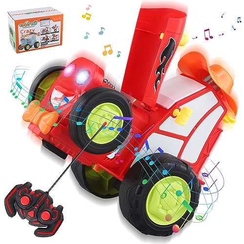 Macchina Telecomandata, Crazy Jumping Car Auto Rotazione Acrobatica Stunt Car Telecomandate Macchina Radiocomandata per Bambini Giocattoli Regalo con luci colorate e interruttore musicale Rosso