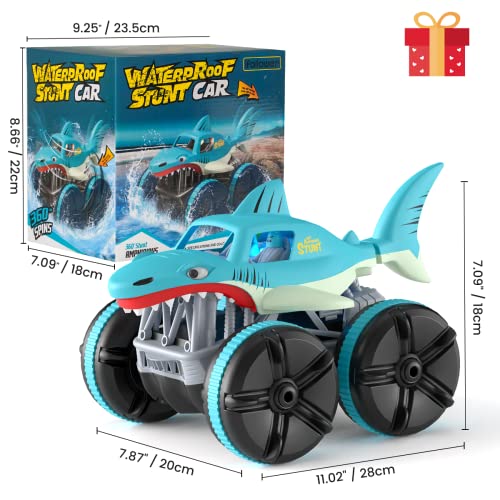 【Abilità di rotazione a 360°】: Questo camion acrobatico con aspetto da squalo esegue acrobazie incredibili, rotola verticalmente/sottosopra a 45° e 90°, attraversa tutti gli ostacoli e si ribalta in uno spettacolo fedele e dettagliato a 360° di squalo avanti, indietro, sinistra e destra. I LED si accendono e scodinzolano quando questo squalo automobilistico sta rotolando.