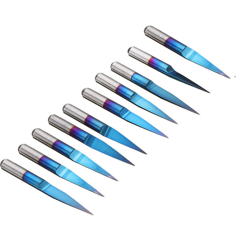Elevata durezza, elevata resistenza all'usura e alta resistenza. Gamma di elaborazione: PCB, rame, alluminio, ABS, acrilico, PVC, nylon, resina, la maggior parte delle materie plastiche, legno, fibra di vetro, carbonio. L'uso di metallo duro a grana ultra fine con buone prestazioni di fresatura e taglio garantisce un'elevata efficienza di lavoro. Spigolo vivo, fresatura, foro e bordo della piastra, superficie pulita e ordinata, senza sbavature. Caratteristiche: Materiale: acciaio al tungsteno Tipo: punte per incisione con fondo piatto Forma: a forma di v Grado: 10 ° / 15 ° / 20 ° / 25 ° Diametro stelo: 3,175 mm Diametro tagliente: 0,1 mm -0,4 mm Lunghezza totale: 33 mm Formato del pacchetto: 5,5 * 5,2 * 1,0