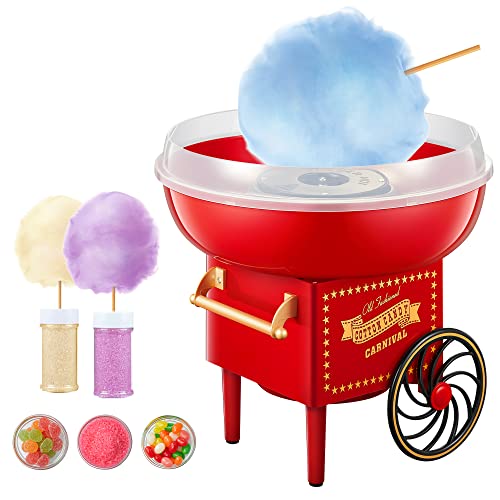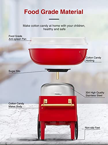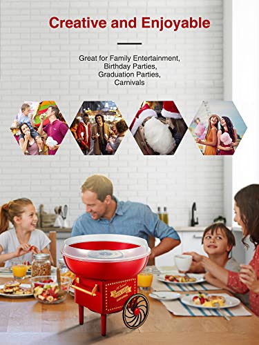 Macchina per Zucchero Filato 500W Retro Cotton Candy Machine con Piatti Antiaderenti, Uttalizare Regolare Zucchero o Caramelle Senza Zucchero, Rosso