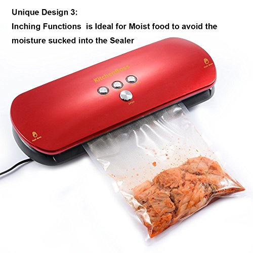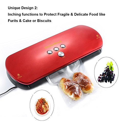 Macchine Sottovuoto per Alimenti, Macchina Sigillatrice Cucina con Sigillamento Sistema per il Confezionamento di Conservazione del Cibo, Carne, Frutta, Sigillante vuoto Della Famiglia + 5Pcs Sigillasacchetti borse (Rosso)