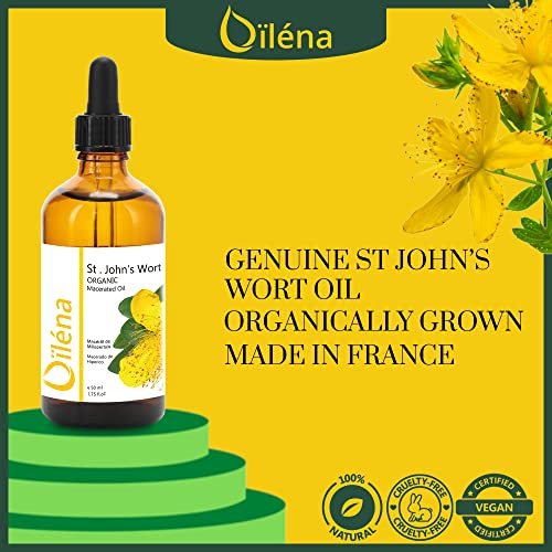 Puro olio macerato di iperico · Olio di iperico · Olio naturale per la cura di corpo, viso e capelli · Olio di iperico naturale al 100% per massaggi · 50 ml