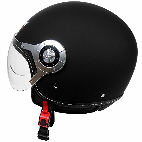 Mach1 Jethelm - Casco da moto con visiera trasparente, taglie XS-XXL, nero