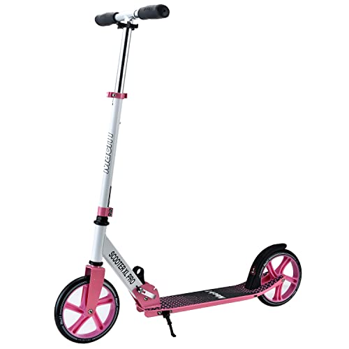 Mach1 Kick Scooter in alluminio City Roller grande 200 mm ruote grandi ruote / pneumatici adulti e bambini scooter pieghevole (XL bianco rosa)