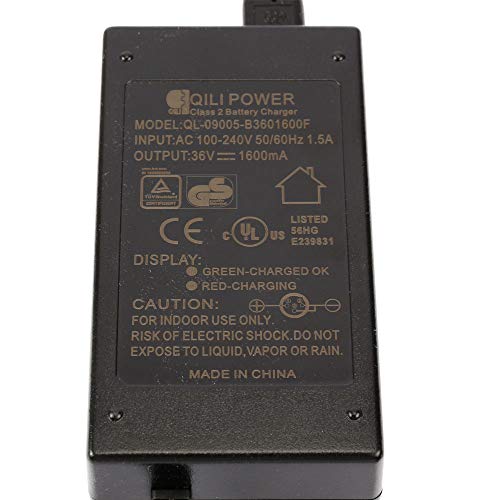 Attenzione: il caricabatterie è adatto solo per uno scooter Mach1 da 36 V. Il caricabatterie non è adatto per uno scooter da 48 V. Descrizione del prodotto: Input: AC 100-240V 50/60Hz 1.5A Output: DC 36V = 1600mA