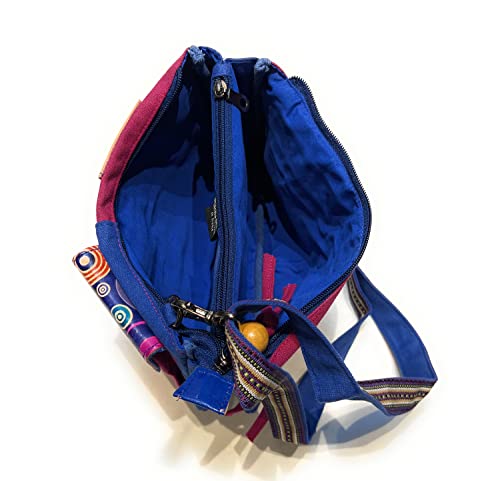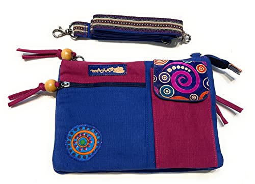 Macha borsa piccola in cotone etnico con stampe colorate e inserti in pelle, borsa a tracolla in cotone e pelle per donna Etnica indiana colorata (Blu 01)