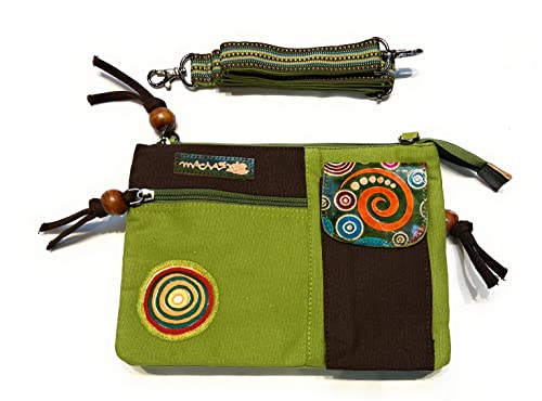 Macha borsa piccola in cotone etnico con stampe colorate e inserti in pelle, borsa a tracolla in cotone e pelle per donna Etnica indiana colorata (verde)