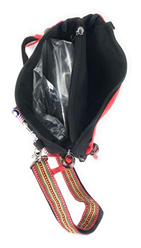 Macha borsa piccola in cotone etnico con stampe colorate e inserti in pelle, borsa a tracolla in cotone e pelle per donna Etnica indiana colorata (nero)