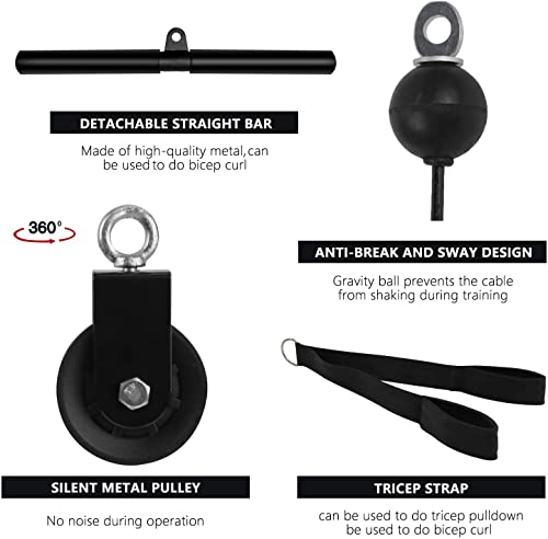 【Componenti professionali】 - La sfera di gravità del cavo può impedire al cavo di tremare durante l'uso. La fibbia in lega chiusa non si rompe né si allenta, fornendo una protezione adeguata. La carrucola palestra silenziosa garantisce l'assenza di rumore extra durante il funzionamento.