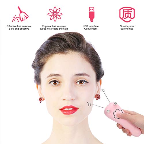 Hair machine electric hair remover, Epilatore per la rimozione dei peli del viso per donne, filettatrice elettrica per il viso, epilatore fisico per donne, host + filo di cotone + cavo USB(rosa)