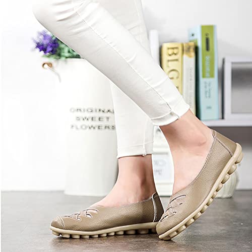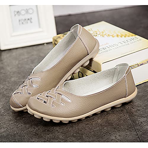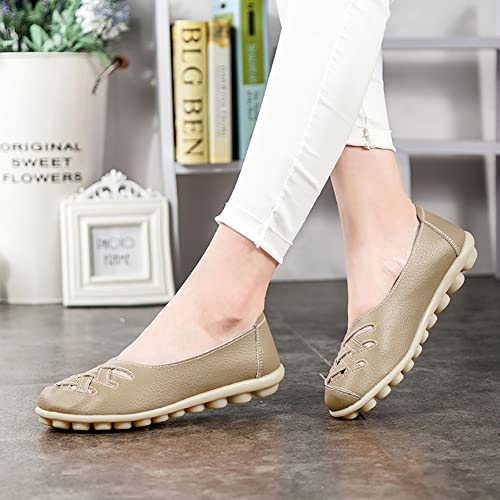 MACHSWON Mocassini da donna in pelle scava fuori comodi mocassini casual punta rotonda Mocassini selvaggi guida appartamenti morbidi scarpe da barca da donna, Beige, 39 EU