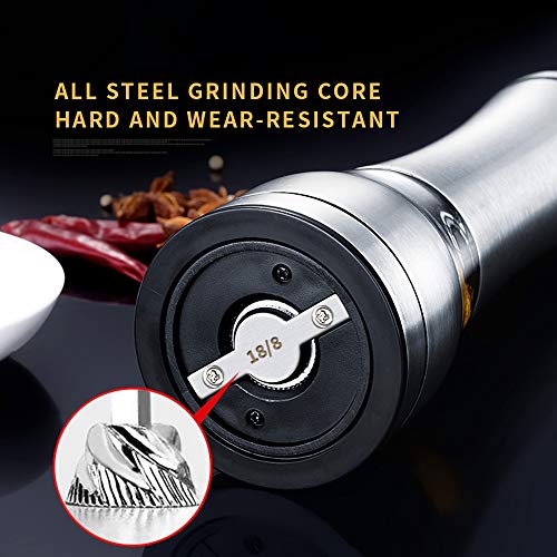 Kuan macina Sale,macina Pepe,Pepe in grani,Regolabile da Grossa a fine,Nucleo di macinazione Interamente in Acciaio,Acciaio Inossidabile 304 di Alta qualità,Adatto per la Cucina,Come Regalo