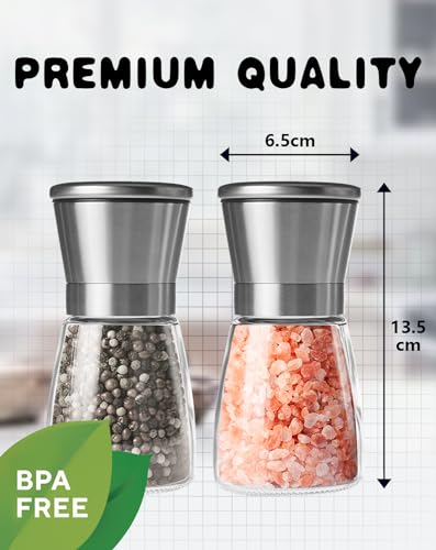 Macina Sale Pepe Macinasale Nucleo ceramico regolabile macinapepe, Macinatore per spezie manuale Set di 2 pezzi [Senza contenuto di spezie]
