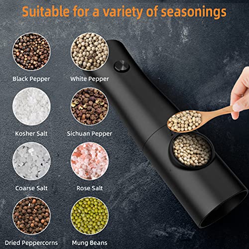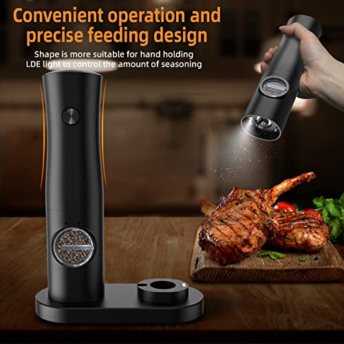Macina USB-C Sale Pepe Elettrico Set - Zirzeo Macinapepe con Base Ricaricabile, Macina Sale con Luce a LED/Base/Regolabile/Funzionamento con una Sola Mano (Due Neri)