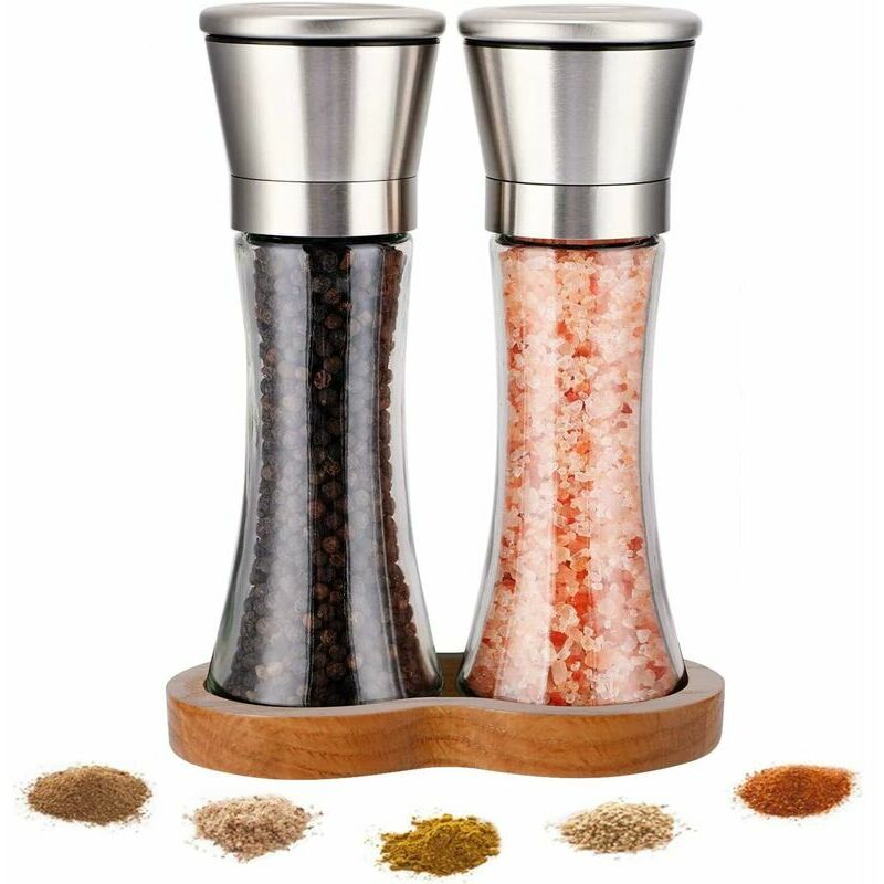 Regolabile e facile da usare: ciascuna delle nostre bellissime smerigliatrici professionali contiene un'efficace smerigliatrice in ceramica regolabile e non corrosiva, quindi se ti piace una macinatura fine o grossolana, basta ruotare per regolarla e renderla senza sforzo. 【Help Beech Stand - : il set ricaricabile viene fornito con un'elegante base in faggio antiscivolo per assicurarti che rimangano dove vuoi. Va bene anche per la conservazione. * Si prega di notare che in questo set non sono inclusi sale o pepe in grani. 【Capacità adatta】: ogni singolo macina sale e pepe ha una capacità generosa (senza essere ingombrante) in un barattolo da 8 once (3/4 di tazza ) e misura 7,5 pollici in modo da poter durare più a lungo tra le ricariche. 【Tappo sigillato】: il tappo sigillato riduce l'umidità che penetra nel sale o nel pepe e assicura che non ci siano polvere, residui o altre particelle indesiderate e assicura un'esperienza culinaria positiva. 【Bellissimo materiale】: con vetro