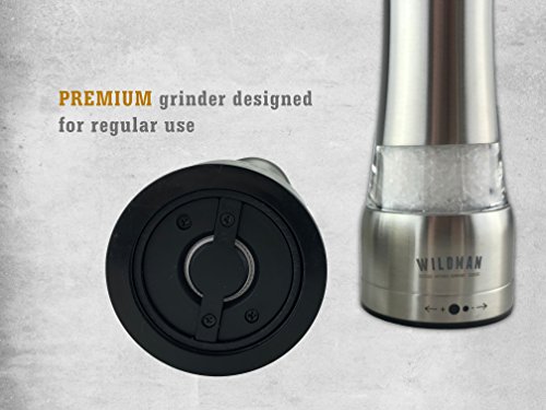 Set di macinini manuali per sale e pepe (2 pezzi), regolabili, con ampio corpo in acciaio, facili da riempire (attraverso la parte superiore), in acciaio inox spazzolato, di grandi dimensioni - Manual Grinder Steel