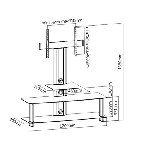 Maclean MC-626 Tavolo con Tre Mensole e Supporto Staffa per TV Plasma LED LCD Fino a 55'' in Vetro Temperato e Metallo