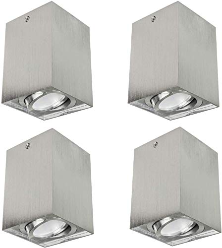 Maclean MCE426 C/M per Lampadine LED GU10 Max.40W Plafone Orientabile Faretto da Soffitto Diversi Colori e Forme IP20 Spot Moderno (Opaco/Cromato, 4x Plafoniera Quadrata+4x Lampad. 7W Bianco Caldo)