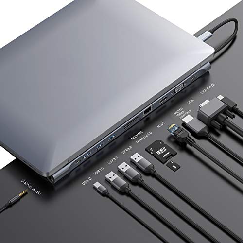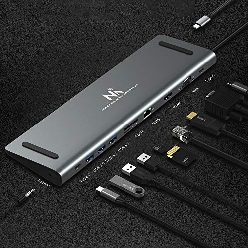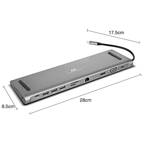 Maclean MCTV-850 11 in 1 USB C 3.1 Docking Station Hub Adattatore HDMI / 3 X USB 3.0 / Alimentazione USB-C / PD (Power Delivery) / VGA 1900 X 1200 @ 60Hz / RJ-45 / Audio Port/ Lettore di schede SD/TF