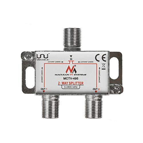 Maclean Splitter Satellite 5-2400MHz Power Pass Connettori F Unicable DVB-S2 (2-Uscite)