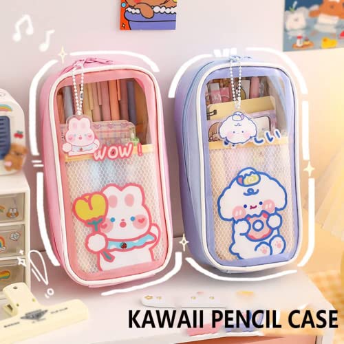 Macmrd Transparent Large-Capacity Pencil Box, Girl Kawai's Pencil Box, Transparent Large-Capacity Pencil Sorting Bag, School Stationery(Pink)